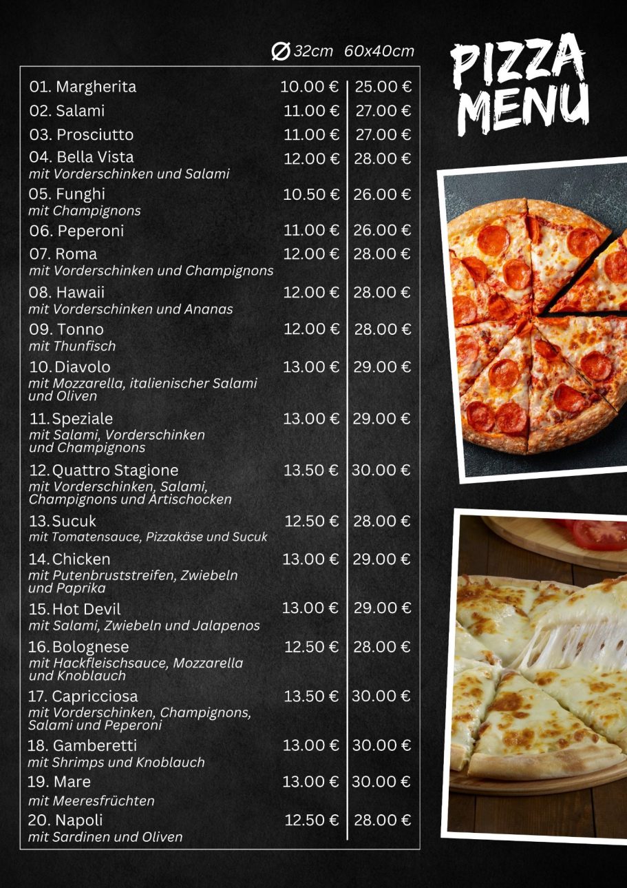 Ihr Lieferservice Bella Pizza beliefert Sie mit Pizza, Pasta und Burgern schnell und frisch. Frischer Essen bestellen beim Bella Pizza Lieferservice in Borsigstraße 18/1/2 89231 Neu-Ulm